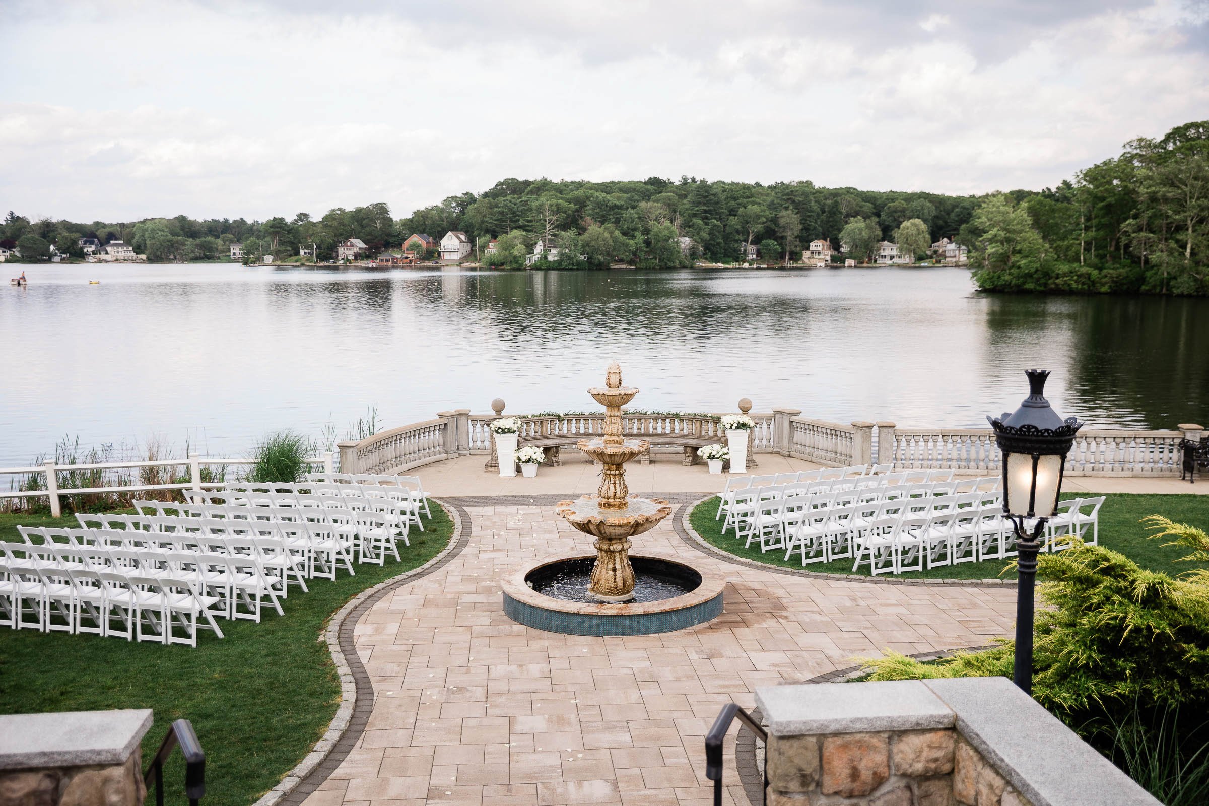 Golden hour at Grandview is particularly special. The way the light hits the lake in the hour before sunset, with the stone pathways and manicured gardens as foreground, creates portrait conditions that rival anything I shoot on the Cape. I always plan a dedicated portrait window during cocktail hour specifically because the waterfront images from those 15โ€“20 minutes consistently become the most displayed photographs from the entire wedding day.